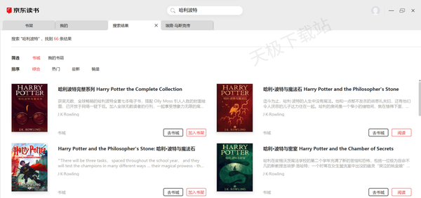 2.书源丰富。京东读书里的书源相当丰富,直接在上方搜索栏搜索即可,书城有相当多书籍供用户挑选。
