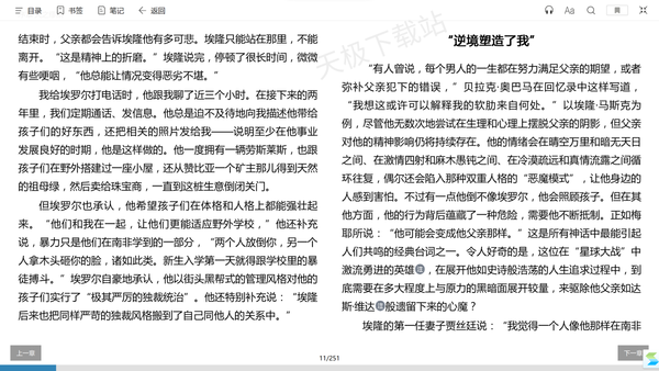 4.其他丰富的阅读功能。除基本的目录,笔记,书签功能外,还支持语音朗读,页面搜索,全屏阅读,满足用户基本的阅读使用需求。