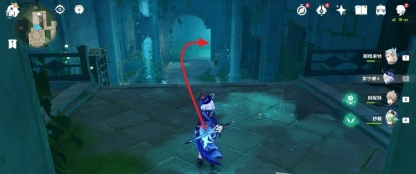 3,拐弯后通过前方水域,就能到达对面平台,然后利用机关开启大门,进入房间。