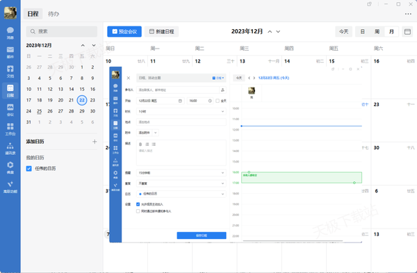 它是一款专业又高效的并且跨平台的办公软件,软件不仅支持个人办公日程的记录、管理,还支持会议日程的管理,电脑和手机端都可以创建、管理日程,再加上内置的丰富的办公工具,令日常办公效率更高。