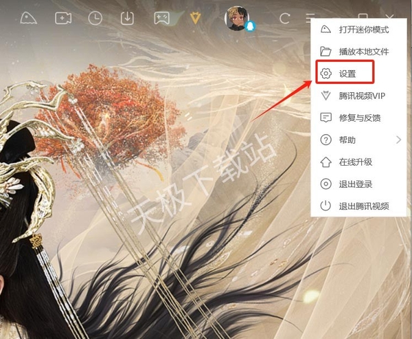 ①我们打开腾讯视频客户端,然后在客户端右上角找到设置选项。