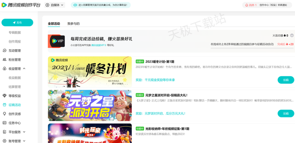 4.征稿活动,任务,创作灵感,平台服务等功能。