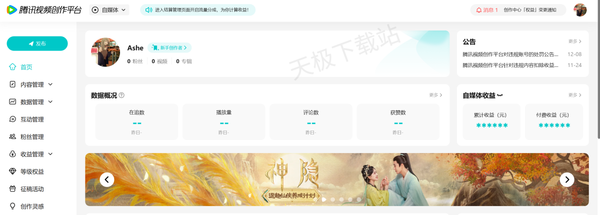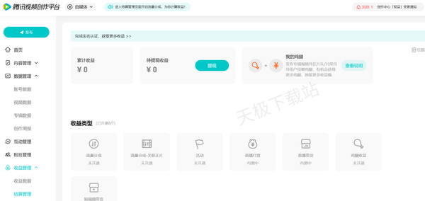 3.收益管理,在这里我们可以查看我们的作品收益,数据等。