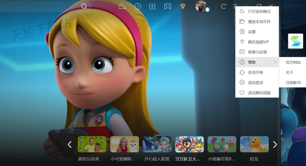 1.打开腾讯视频客户端,点击右上角三条横线,然后依次选择“帮助”-“官方网站”,进入网页版腾讯视频;或者直接在网页打开网页版腾讯视频。