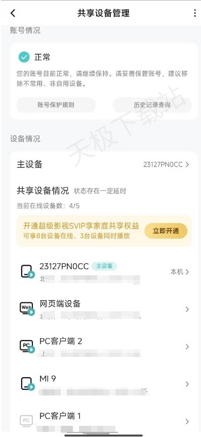 经调查,电脑版腾讯视频不可以管理登录设备,要想管理登录设备,我们需要通过手机端腾讯视频来完成。我们需要在手机端的个人中心的设置页面找到共享设备管理,然后就会显示此账号所登录的所有设备信息,这样我们就可以对登录设备进行移除了。需要注意的是,要想完成管理操作,我们要确保自己的设备为主设备,这样我们登录的账号才有权限进行管理。