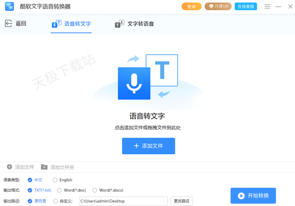 4.除文字转语音外,还支持语音转文字功能,不仅支持中文,英文同样也可被识别。