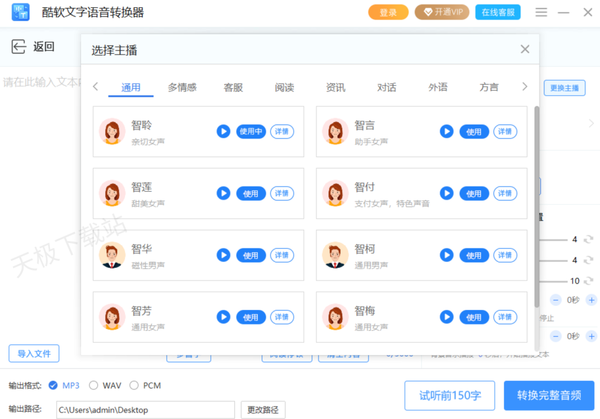 1.不同音源音色的主播多,有外语、方言、客服、多情感等类型,每一种类型还细分了不同的音色主播。