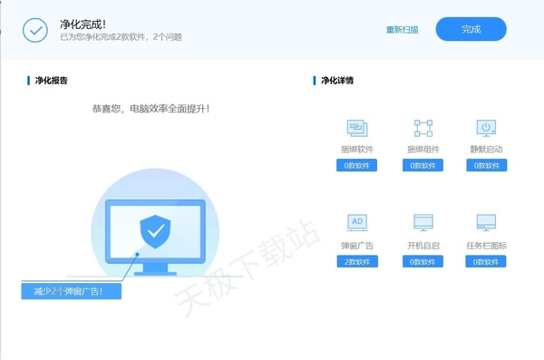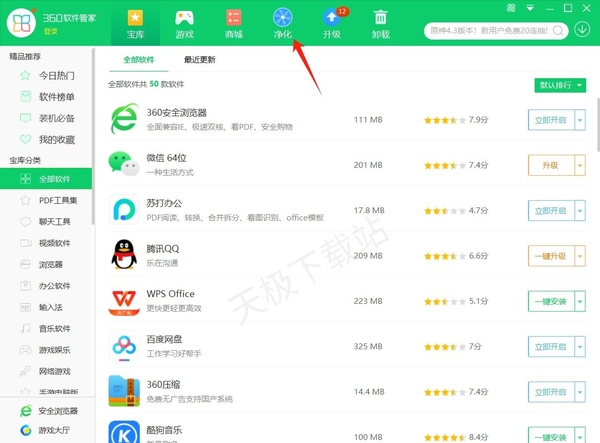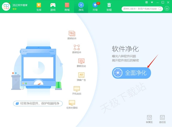 360软件管家的净化功能可以有效解决平时下载软件中的多种问题,如捆绑软件、捆绑组件、静默启动、弹窗广告、开机自启和自动添加任务栏图标等。一旦开启该功能,不仅可以提升电脑的运行速度,还可以极大地改善我们的使用体验,让电脑保持“清爽一夏”。