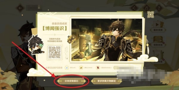 当我们挑选出四个正确的古物以后,点击下图左侧的“分享领取原石”按钮,就可以了,你学会了吗。