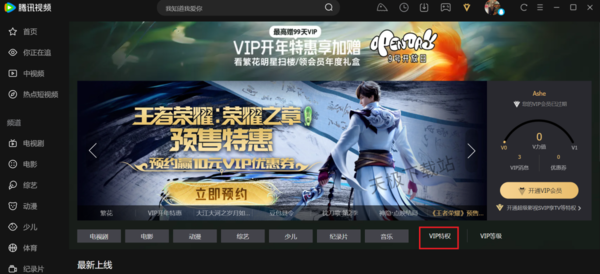 1.打开腾讯视频客户端,进入会员中心,点击VIP特权。