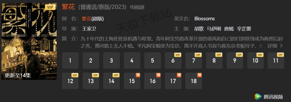《繁花》是一部都市励志电视剧,由王家卫执导和监制,胡歌、马伊琍、唐嫣、辛芷蕾领衔主演,郑恺、游本昌、陈龙、董勇、吴越、陈国庆、姜逸磊、黄觉特邀主演。该剧于2023年12月27日在中央8台首播,每天播出两集,腾讯视频同步播出。