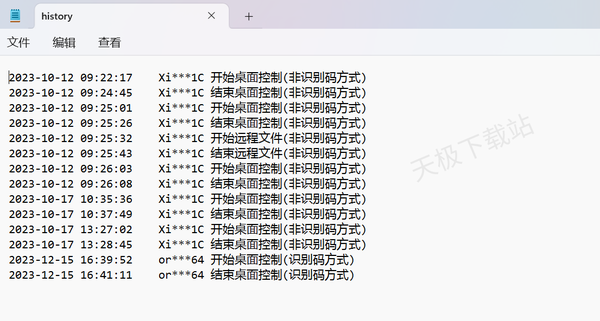 2.之后会弹出一个名为“history”的记事本窗口,里面会详细记录设备控制记录。