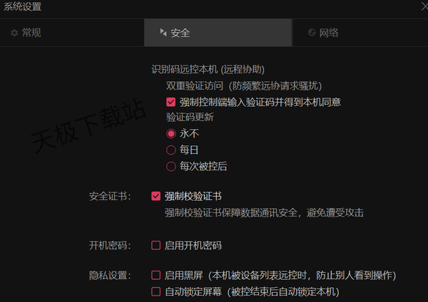 3.设置界面拥有更多安全设置选项,包括双重验证访问,验证码定期更新,以及各种隐私和安全设置等。