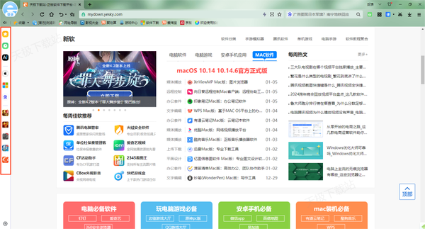 一、将电脑端的2345王牌浏览器更新升级至最新版本,大家可以去官网下或者是在本站下载软件的最新安装包进行安装,待软件更新至最新版本,大家就可以看到浏览器左侧的侧边栏了。
