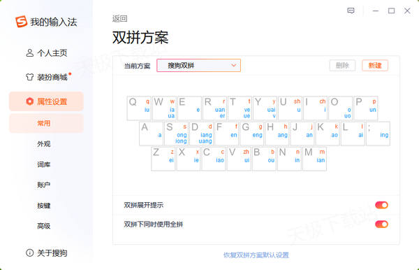 一般来说,大家使用的都是拼音的全拼进行打字,而此时想要获得更快速的打字体验的话,将搜狗输入法的全拼设置改为双拼,双拼指的是用定义好的单字母代替较长的多字母韵母或声母来进行输入的一种方式,在减少手指敲击键盘次数的同时,能够更快速高效的进行文字的输入。