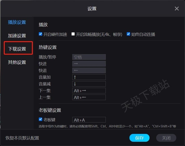 3.在设置页面中,选择左侧功能栏里的"下载设置"选项。