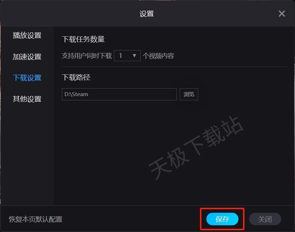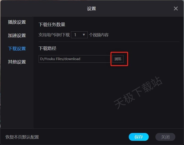 5.确认选择后,点击"保存"按钮即可修改优酷视频文件下载位置。