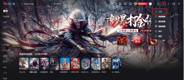1.打开优酷客户端,在主界面上方找到并点击"设置"按钮,进入设置页面。