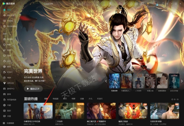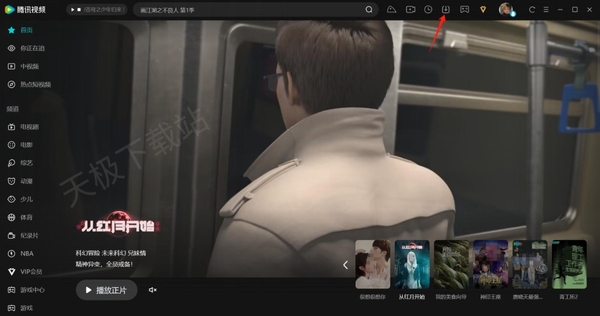 1.完成下载后,我们可以回到视频客户端的首页。在页面上方,我们点击下载按钮。