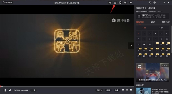 3.在播放页面的上方,我们会找到一个下载按钮。点击该按钮,即可进入下载选项。