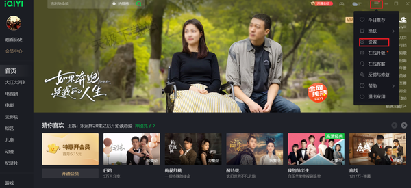 1.打开电脑爱奇艺客户端,点击右上角三条横线,选择“设置”。