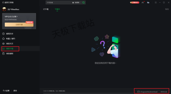 2.点击页面“我的下载”,可以看到已下载和下载中的视频,而下方的地址就是我们下载视频的保存地址,同样可以自由更改。