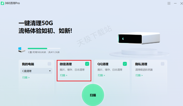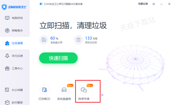4.如果觉得还是清理不够彻底干净,很多第三方电脑清理软件都配备了“微信专清”的功能,可以使用它们进行清理,下面小编就为大家介绍几个非常好用的免费电脑微信专清软件。