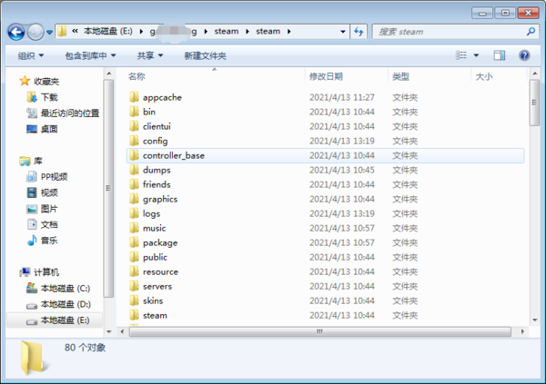 第二步,按照存放路径打开文件,检查steam文件夹名字是否含有中文字符;