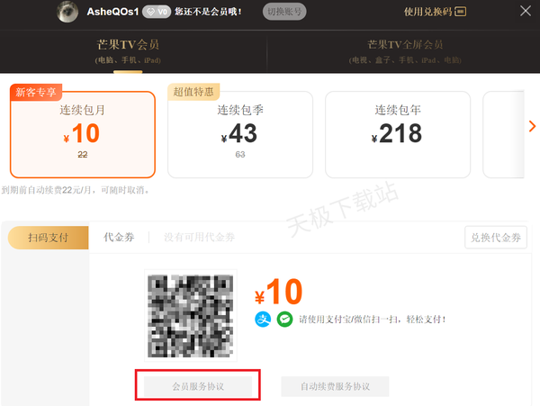 在芒果TV会员开通页面下方可以找到《会员服务协议》,其中第2.3.5条登陆限制表示:同一芒果TV账号最多可以在4个设备上在线,在移动端、电脑端支持同时2台在线,在电视端支持同时2台在线,且同一时间内同一账号最多在2个设备上使用。且同一芒果TV账号24小时内最多可以在5个不同城市登录。