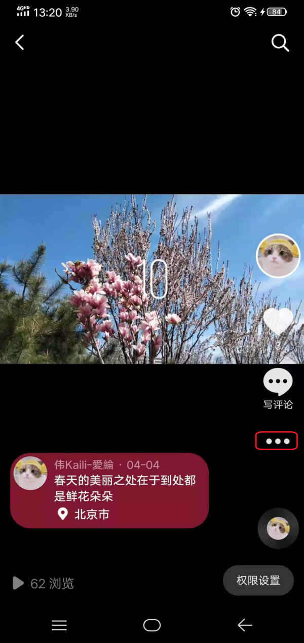 第三步,在作品播放的界面的右侧,我们可以看到【…】三个点的图标,点击它。