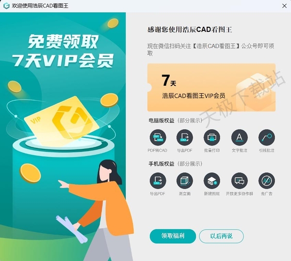 浩辰CAD看图王新用户下载的福利详情