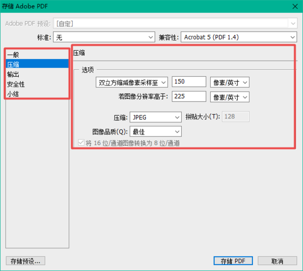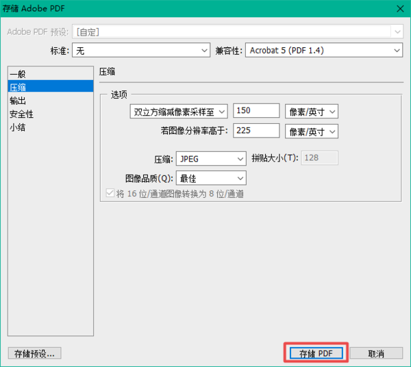 第五步,然后系统会弹出【存储Adobe?PDF】的窗口当中了,此时我们根据自己的实际需求,来调整此窗口中的图片品质。
