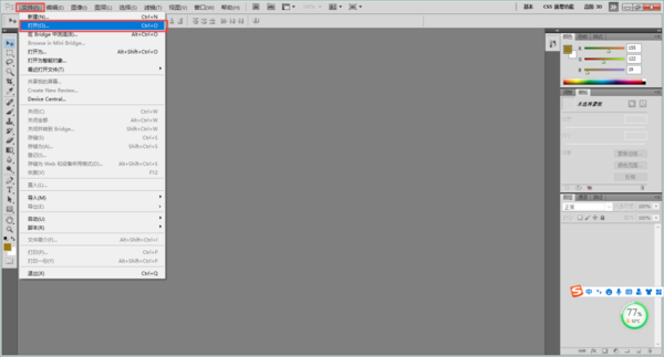 第一步,在电脑的桌面上找到PS软件,然后双击打开,进入到软件的主界面当中后,我们找到【文件】功能下的【打开】功能,将需要处理的图片文件添加进来。也可以直接按下键盘上的【Ctrl】+【O】键来打开图片文件。