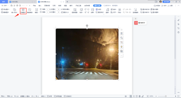 第二步,鼠标左键单击需要进行压缩的图片,文档上方功能区会进入到图片工具板块,点击压缩图片;