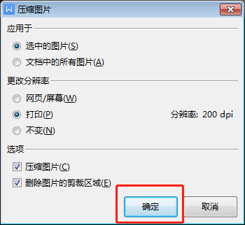 第三步,点击压缩图片后,界面会弹出新的对话框,在对话框按照自己的需要进行选择,更改一下分辨率,点击确定就可以了。