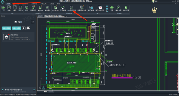第一步,使用电脑端的浩辰CAD看图王打开需要分割的图纸,然后点击【文件】选项卡,找到【CAD图纸分割】功能按钮,这个就是该功能的位置了,点击它。