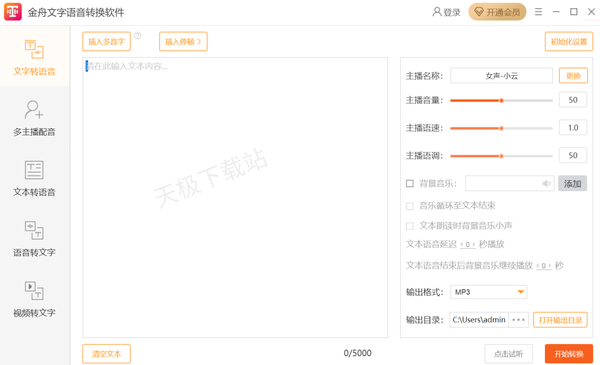 金舟文字语音转换软件由江下信息科技(惠州)有限公司研发,它支持的功能更多,除语音文字互转外,还可以上传文件,视频转文字,拥有最多的语音类型,基本的语音,语速调控,多音字插入,背景音乐添加等朗读功能都具备。