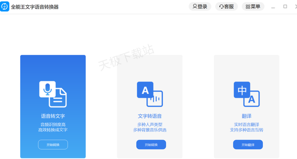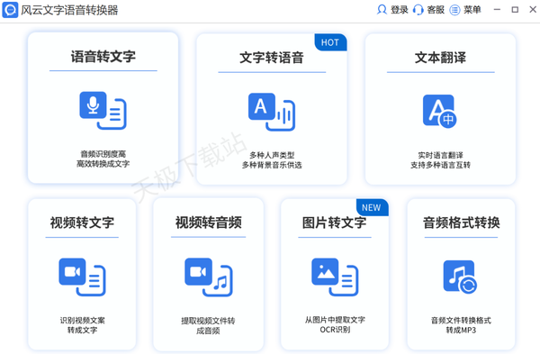 风云文字语音转换器支持的功能最多,在文字转语音上,不同的语音类型还细分了各种情绪,可识别多音字,添加停顿和特殊数字读法,以及非常多语音设置。此外,风云文字语音转换器还支持语音转文字、翻译、视频转文字、图片转文字、音频格式转换6种功能,非常全面,是一款相当专业的文本朗读软件。