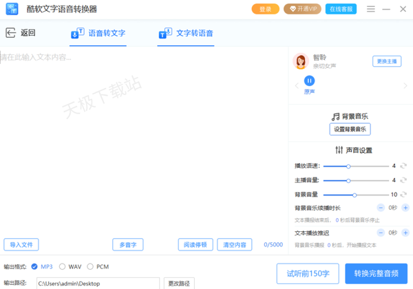 酷软文字语音转换器同样支持文字语音互转,它支持的语音类型更多,细分了客服、阅读、资讯、方言、外语等多种场景,除了可以自由调控语音朗读的语速,音量,添加背景音乐外,而且可以识别多音字,添加朗读语音停顿,非常好用。