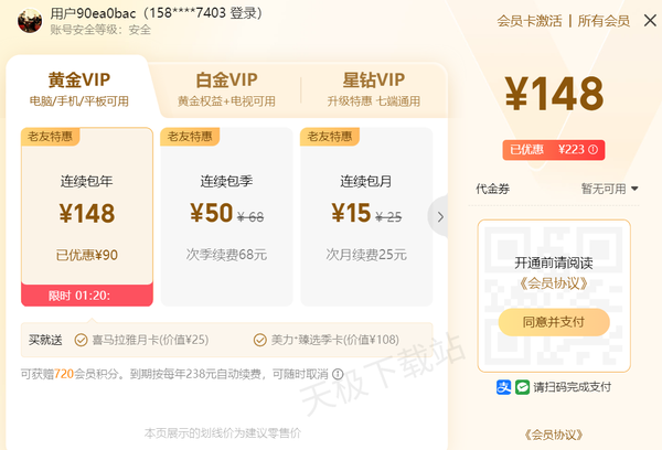 黄金VIP会员或白金VIP会员,则同一个账号同一时间最多可在2个设备终端上同时播放;