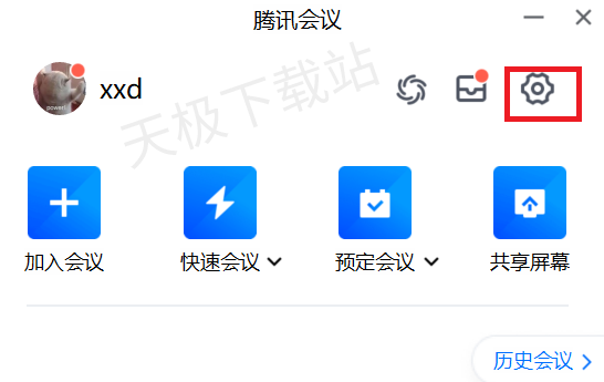 1.打开电脑腾讯会议客户端,点击右上角齿轮选项,进入设置界面。