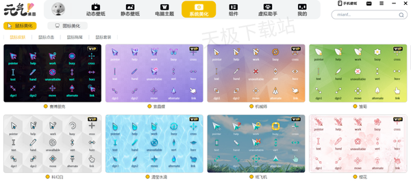 3.支持为电脑更换主题,美化电脑桌面图标,增加鼠标滑动、点击、拖尾特效;