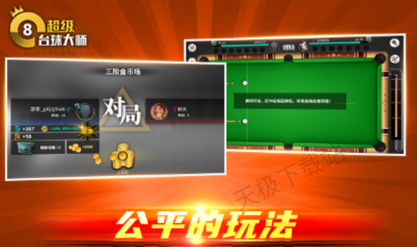 《超级台球大师》是一款真人实时对战桌球游戏,完美还原真实的8球和斯诺克玩法,简单上手无门槛,真实的物理反馈,炫酷的特效,精彩的的赛事,为大家呈现一个丰富多彩的桌球竞技世界。