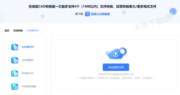 方法二:如果不想下载软件,也可以使用专业在线转换服务,比如迅捷CAD在线转换。