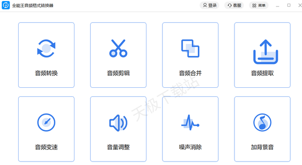 全能王音频格式转换器的功能非常多,有音频格式转换,音频剪辑、合并、提取、变速,音量调整,降噪,加背景音。支持mp3,wav,aac,ogg,flac五种格式之间的转换,是相当专业好用的音频转换神器。