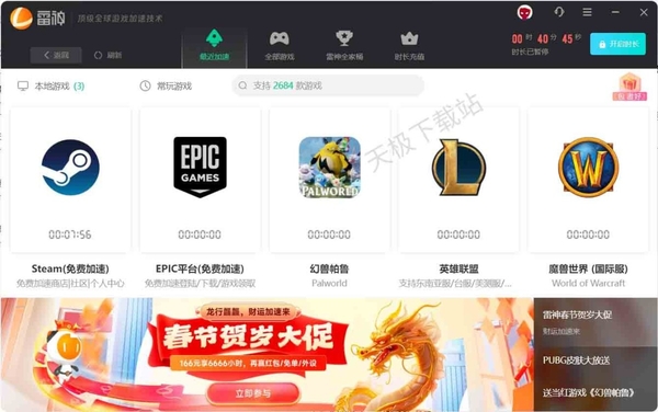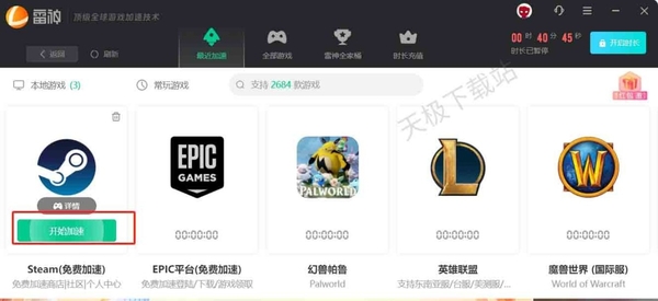 2.确保您的电脑已经安装了Steam软件,这样雷神加速器一登录就能自动检测到它。