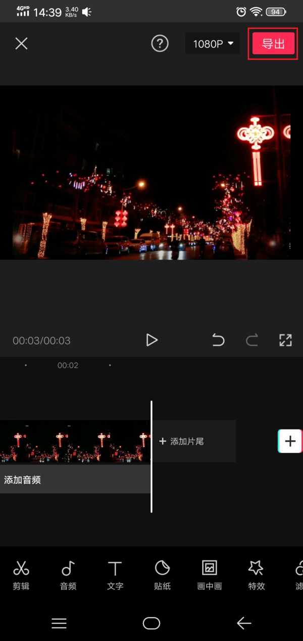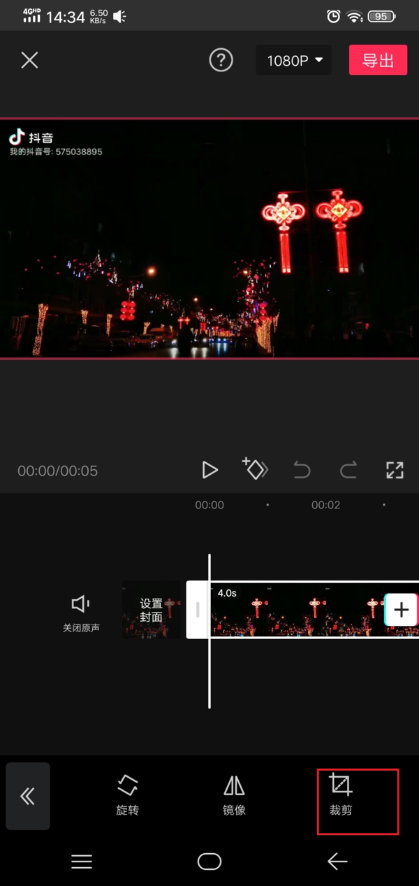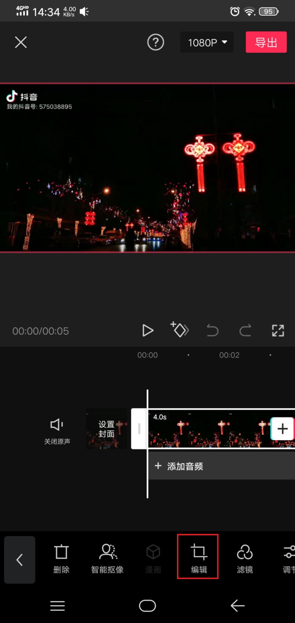 第九步,最后我们就可以获得一个既没有抖音的水印,也没有片尾的视频了,我们点击界面右上角的【导出】按钮,就可以将剪辑好的没有抖音水印的视频存到手机中了。