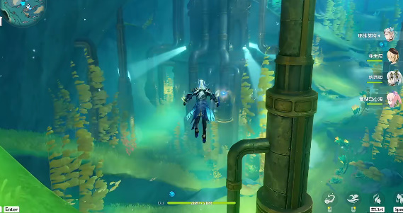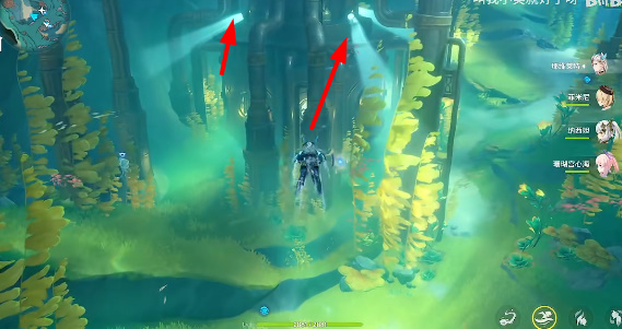1、在到达梅罗彼得堡中海中的会发现,有出现灯光照射,如下图所示,玩家可以游到灯光的附件。