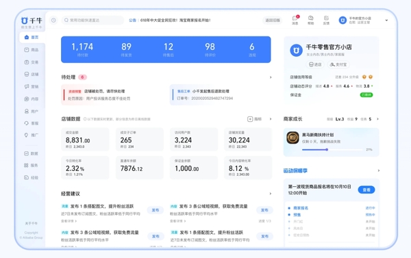 千牛,作为阿里巴巴旗下的电商管理软件,已经成为了众多顶尖电商的首选工具。它集成了商品管理、订单处理、库存管理、客户沟通等多种功能,为电商企业提供了全方位的运营支持。此外,千牛还提供了丰富的数据分析和报表功能,帮助电商企业更好地了解客户需求和市场趋势,为制定营销策略提供有力支持。目前,已经有诸多电商,通过千牛实现价值增长,完成蜕变!