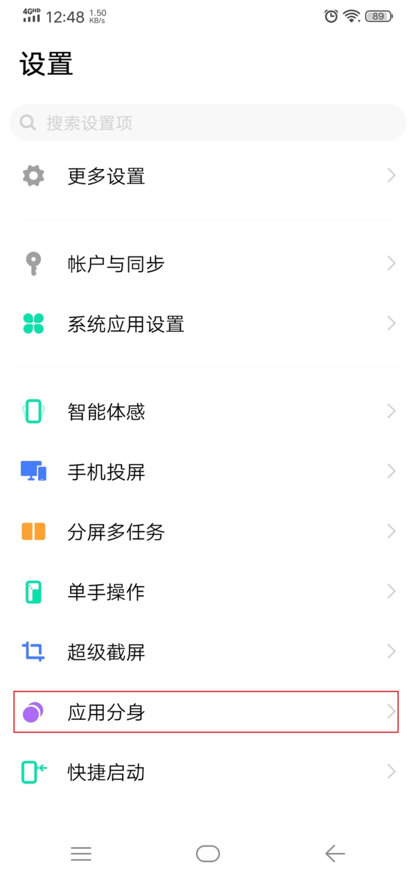 第二步,进入到手机的设置界面当中后,我们找到【应用分身】功能,并点击进入。